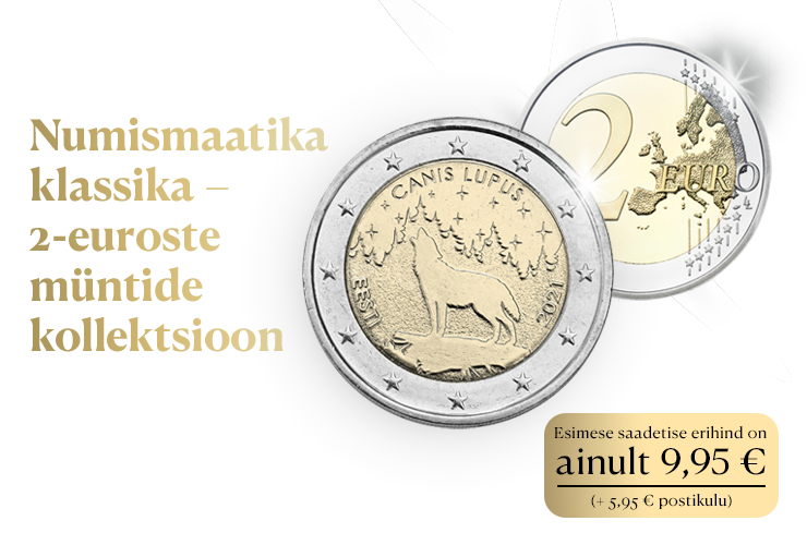 Kuigi kollektsioon koosneb meenemüntidest siis pakume teile seekord esimese saadetisena Eesti 2-eurost käibemünti, millel on meie rahvusloom hunt.