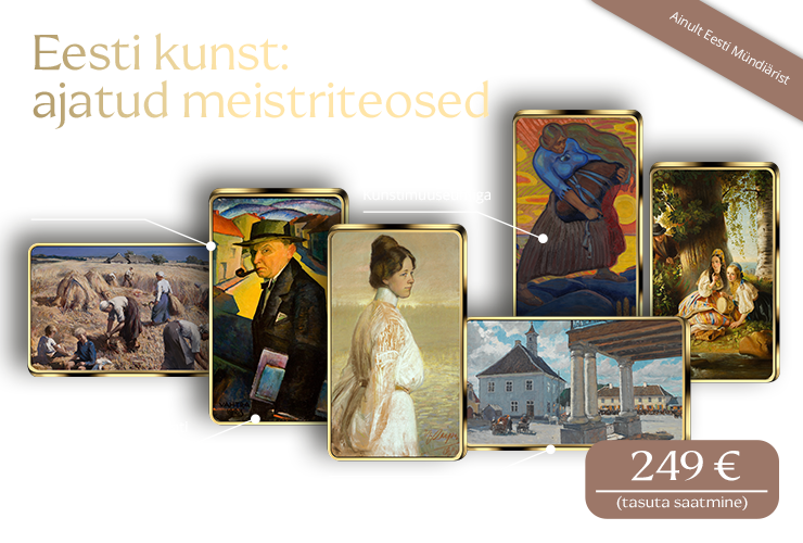 Meil on hea meel tutvustada komplekti, mis on pühendatud Eesti kunsti meistriteostele. Komplekt sisaldab kuut kõrgeima prooviga kullaga kaetud plaati, millele on reprodutseeritud Eesti tuntud kunstnike maalid.