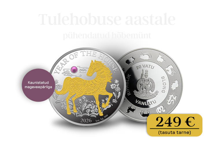 Meil on hea meel esitleda teile hõbemünti, mis on pühendatud Tulehobuse aastale. Hiina kalendri järgi algab Tulehobuse aasta 17. veebruaril 2026 ja lõppeb 5. veebruaril 2027.