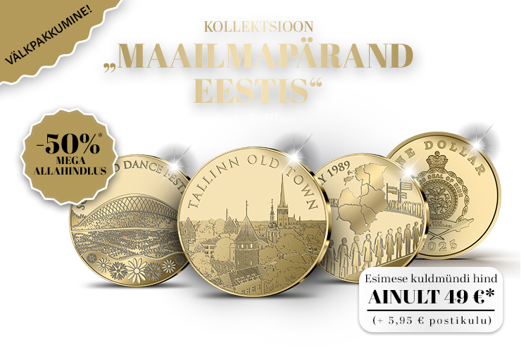 * Esimese mündi erihind kehtib ainult terve kollektsiooni tellimisel. Soovides tellida ainult esimese mündi, on hinnaks tavahind 99 eurot (+ saatekulu 5,95 €). Kui soovite tellida ainult esimese mündi, helistage 688 6090.