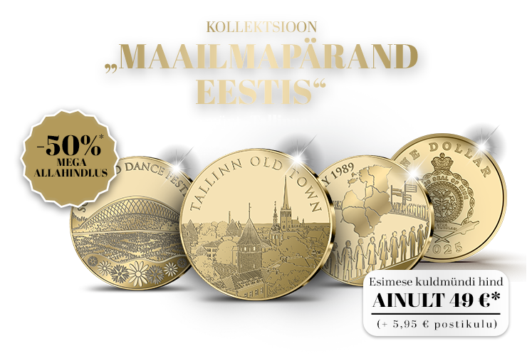 Jah, tellin kollektsiooni „Maailmapärand Eestis” esimese münt „Tallinna vanalinn” erihinnaga 49 €. Lisaks kuuluvad tasumisele saatmiskulud 5,95 €. Selle münt tellimisega saab minust kollektsiooni koguja ja olen nõus, et mulle saadetakse iga kuu üks kollektsiooni kuuluv münt, mille hind on 99 €. Lisaks kuuluvad tasumisele saatmiskulud 5,95 €.